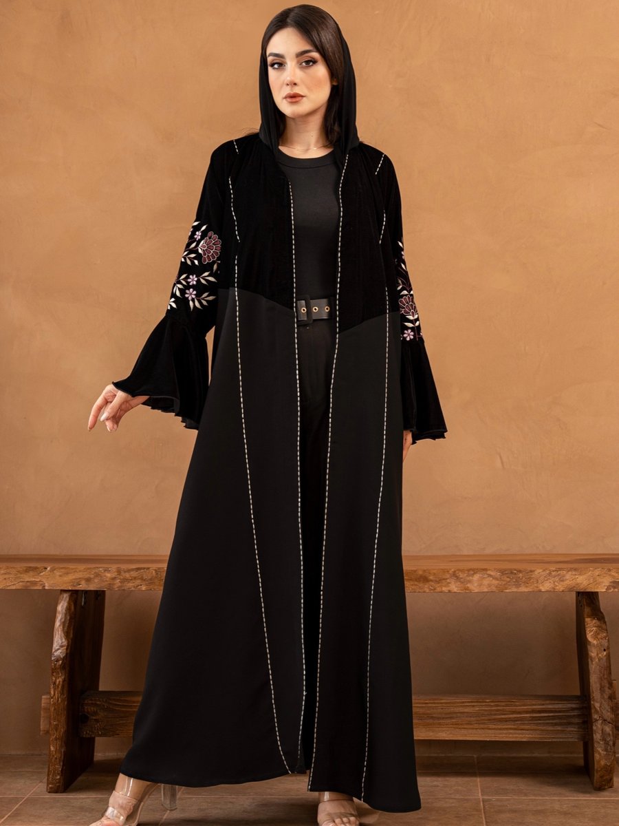 عباية كشخه بقصه كروش عليها شغل في اليد وقماش نوعين انترنت على مخمل.