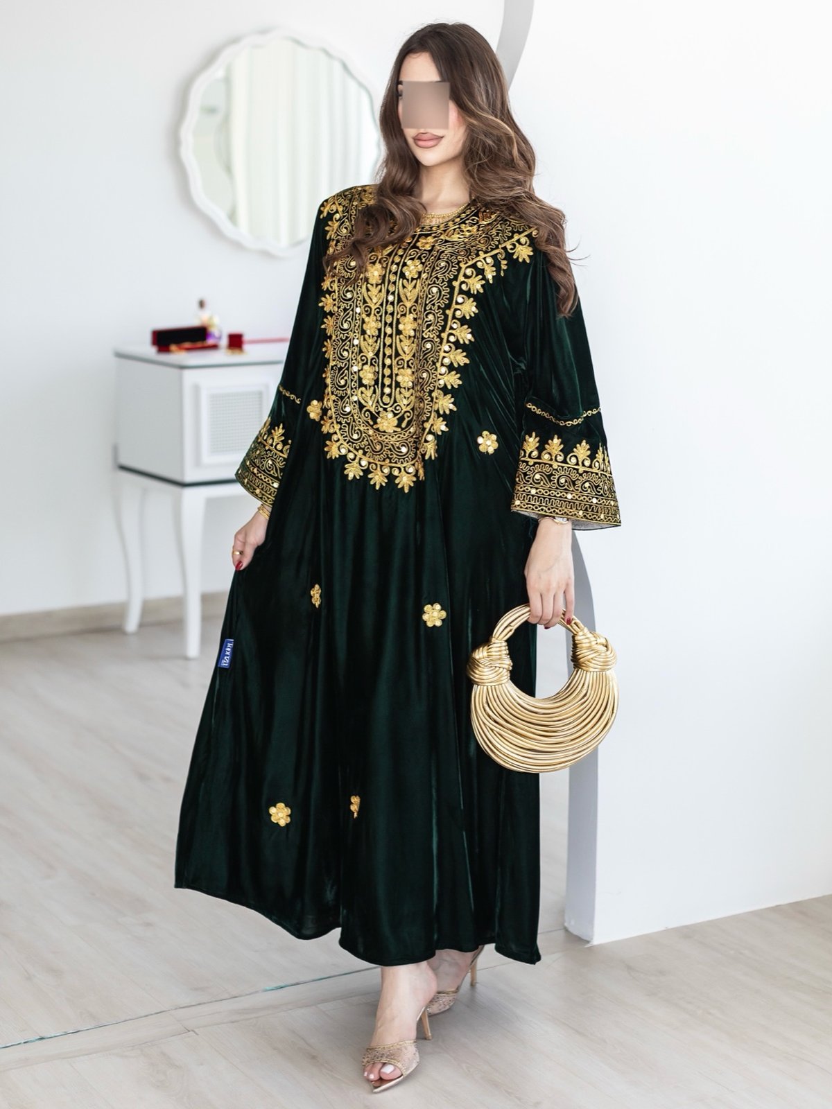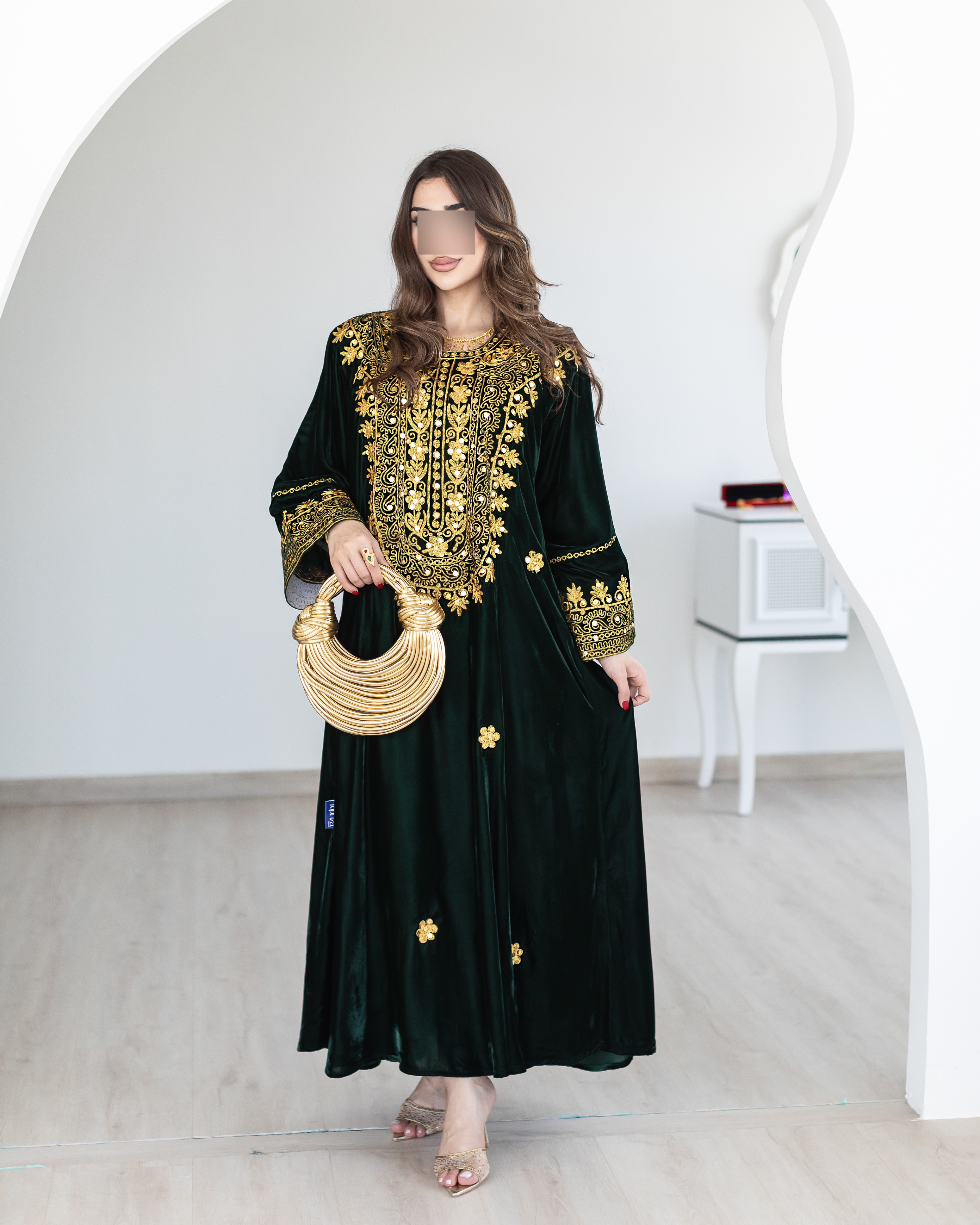 قصه كلوش بقماش مخمل خفيف مناسب للصيف + شيله